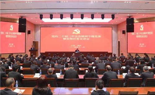 11月25日,根据国务院国资委党委和九游会j9党委工作安排,江西水电公司党委举办了党的二十届三中全会精神专题党课暨形势任务宣讲会。 会议以《全面贯彻党的二十届三中全会精神 推动公司高质量发展再上新台阶》为题,全面系统地解读了党的二十届三中全会精神的重要意义、基本内容,具体阐述了进一步全面深化改革的重点任务和国资国企改革内容,引导公司党员、干部正确认识当前经济形势和公司面临的改革发展形势任务,并聚焦公司改革发展重点提出推动高质量发展的思路和方向。 会议指出,公司正处在全面深化改革的关键期,推动转型升级的关键期,面对新形势、新任务、新挑战,既要看到短期波动的“形”,更要看到长期发展的“势”,保持战略定力,增强发展信心,锚定目标任务,以更加强烈的责任担当,砥砺前行,抢抓机遇,应对挑战,不断拓宽发展新空间,塑造新优势,增添新动能。 会议要求,各单位要持续提升核心竞争力,强化战略使命,全力抓好市场营销,推动经营稳步增长;要强化管理提升,坚持创新驱动引领,提高项目精益化管理水平,着力防范化解风险,提升发展效能效率;要纵深推进全面深化改革,做实做细任期制和契约化管理,加强授放权管理工作,增强发展活力动能;要坚持党建统领,抓好项目党建工作,加强支部品牌建设,纵深推进全面从严治党,持续赋能高质量发展。 会议强调,面对国资国企改革任务,江西水电党委使命光荣,重任在肩,始终把学习好、贯彻好、落实好党的二十届三中全会精神作为重大政治任务,发扬改革精神,落实改革举措,坚定不移做强做优做大国有企业,持续推动公司高质量发展再上新台阶。 会议设置主会场和视频分会场,公司在昌领导班子成员、高管、副总师、高级职员、各职能部门负责人、二级单位党政主要负责人及部分党员代表参加,共计150余人。 |